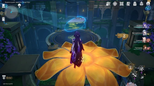 Пройдите направо и запустите киот, с его помощью спуститесь вниз на цветке.