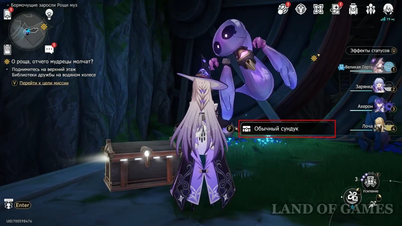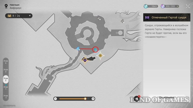 Переместитесь в Библиотеку пророчества и поднимитесь к балкончику на западном крыле в верхней половине помещения (1 этаж): напротив стеллажа со свитками увидите обычный сундучок. Как только попытаетесь забрать награду, появится дух-воришка – предотвратите кражу и верните ларец, а также получите вознаграждение за разговор с Бартолосом (40 нефрита и 60 амброзии).