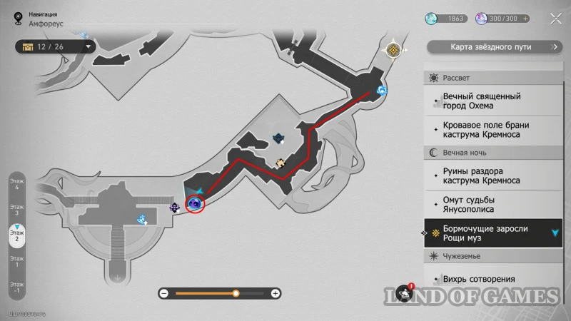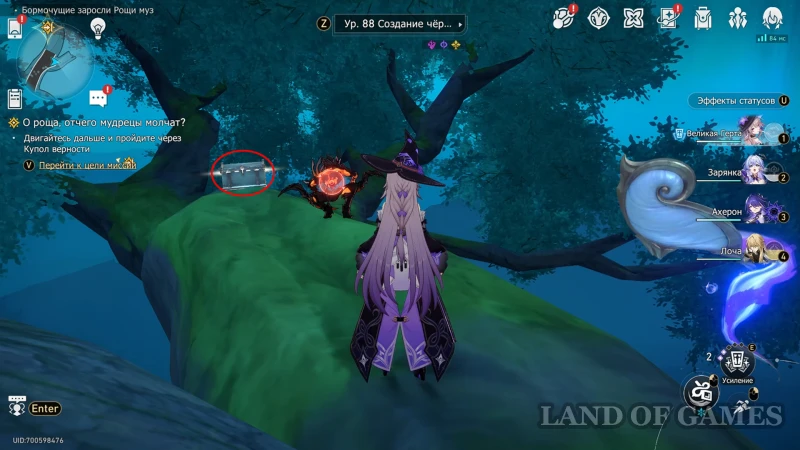 От площадки с рукой Загрея на северо-востоке рощи поднимайтесь по заполненной врагами гигантской ветви, сверните вправо и попытайтесь открыть сокровищницу. Здесь произойдет еще одна встреча с воришкой, и на этот раз он захочет побороться ради наживы. Чтобы быстрее закончить с духом, бейте его прописанными на модельке навыками, а остальных мобов – электрическими, квантовыми и мнимыми атаками.