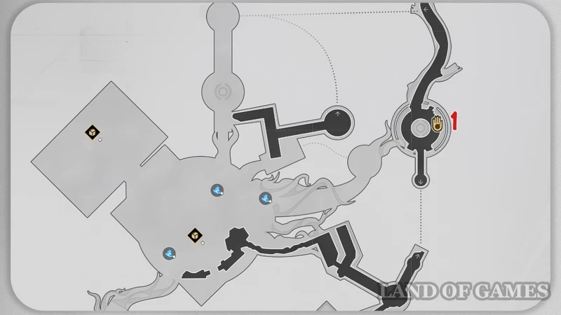 Третьей ладонью можно управлять сразу с двух пультов: они расположены в пределах мостовой между якорями «Врата судьбы» и «Тропа паломников» (оба на -1 ярусе, но проще спуститься под мост на любом из лифтов, помеченных на карте маленькой стрелочкой). Закончив сбор монет, бегите к северному подъемнику и получите ценную сокровищницу. А теперь к местонахождению трех жетонов: