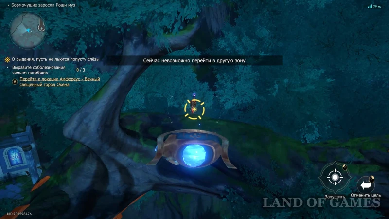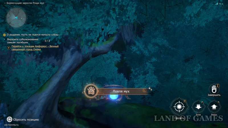 - Используя руку на северо-востоке Рощи муз, спуститесь к ветви дерева, растущей чуть ниже ближайшего мини-телепорту и направьте атаку на крылатого монстра.
