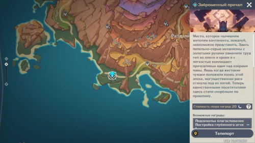 - Вознаграждение: 100 очков приключений, 2025 мора, 20 очков дружбы, сет Маленькое чудо (3-4 звезды), сет Ученый (3-4 звезды), сет Финал галерей глубин (4 звезды) и сет Клятва долгой ночи (4 звезды).