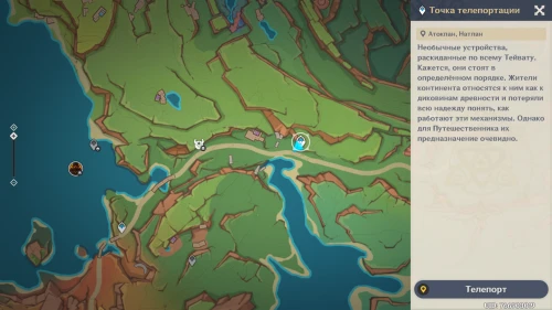 Итак, первым делом попадите в Натлан, переместившись к открывшемуся телепорту к западу от пустыни Хадрамавет. Далее доберитесь до Атокпана, переместившись к другой автоматически открывшейся телепортационной точке прямо на северо-востоке отмеченной области. Затем начните идти по дороге на запад, пока не дойдете до расщелины справа. Спрыгните в эту дыру.
