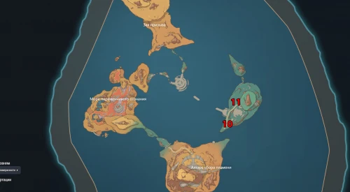 На Короне небесного огня есть 10 золотистых печатей— на карте выше можно ознакомиться с примерным расположением каждой из них. В отдельном гайде мы подробнее рассмотрели все места.