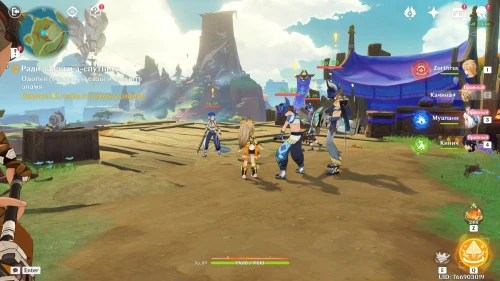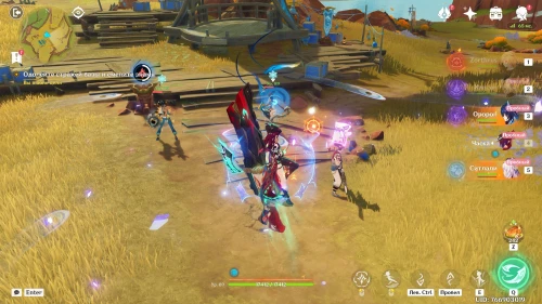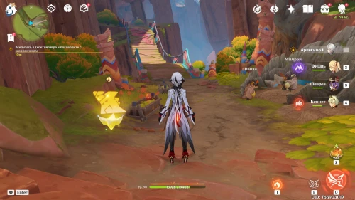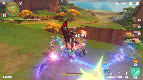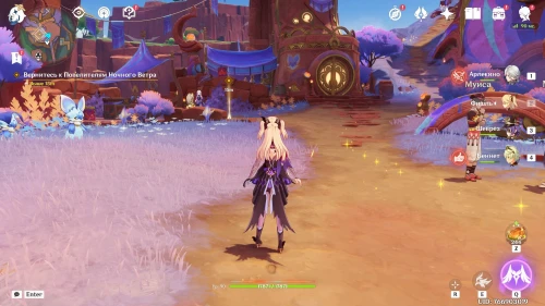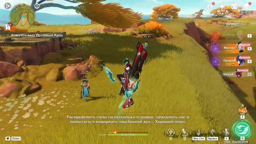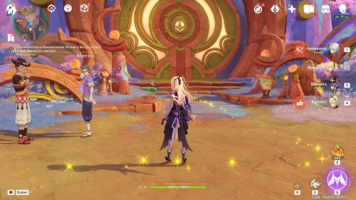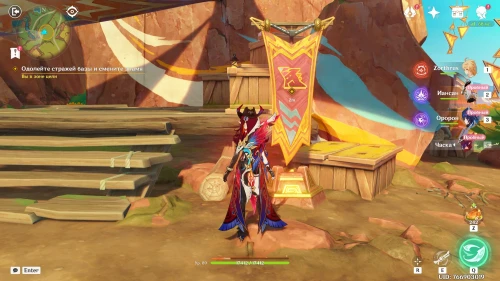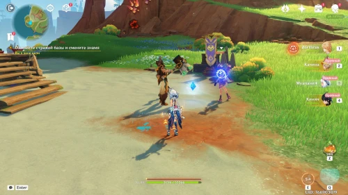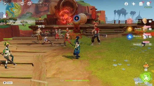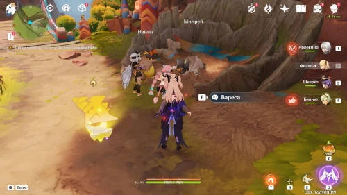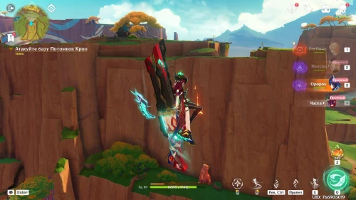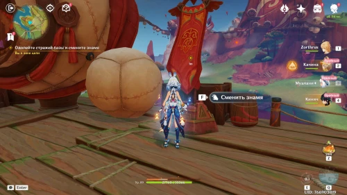 Далее начнется второй этап игр, где вы объединитесь с другой командой. На этот раз в вашем отряде будет Путешественник (саб-ДД), Часка (мейн-ДД), Оророн (саб-ДД) и Иансан (саппорт). Сразу же переключитесь на Часку и используйте ее навык, чтобы взмыть в небо. Затем перелетите через пульверит к вражеской базе.