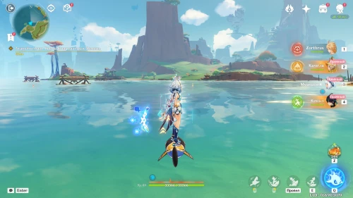 Вам необходимо будет захватить 3 базы противников. В вашей команде будут присутствовать Муалани, Кинич, Качина и Путешественник. Используйте навык Муалани, чтобы на серфе быстро преодолеть морскую поверхность.