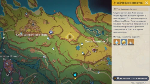 Вы найдете Ифу к западу от Холма Уитцтли, на большом плато, неподалеку от длиношеев. Послушайте его разговор с помощником, что приведет к завершению задания и получению награды: 40 примогемов, 40 тысяч моры и 1 корону прозрения.