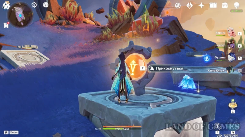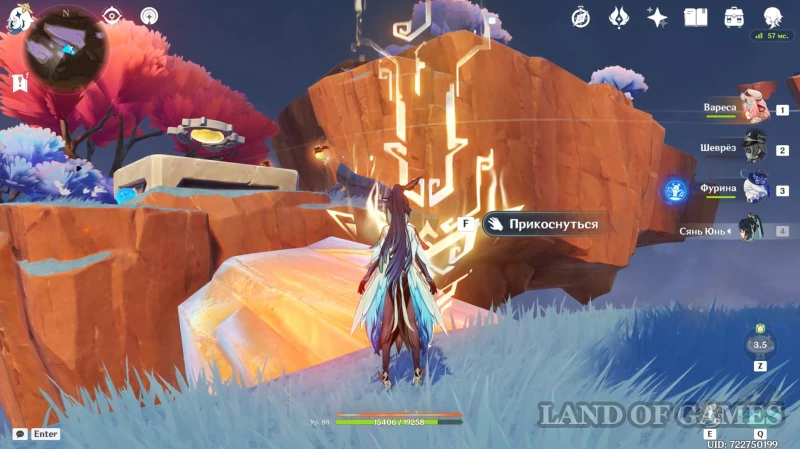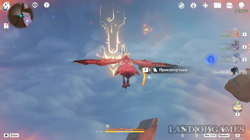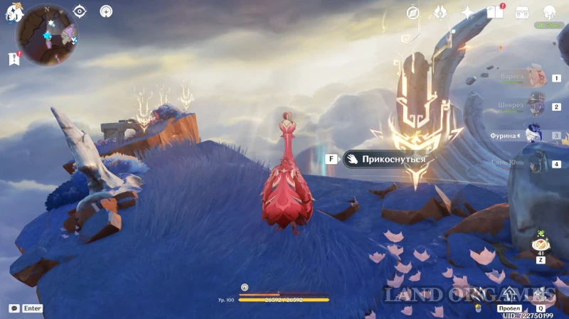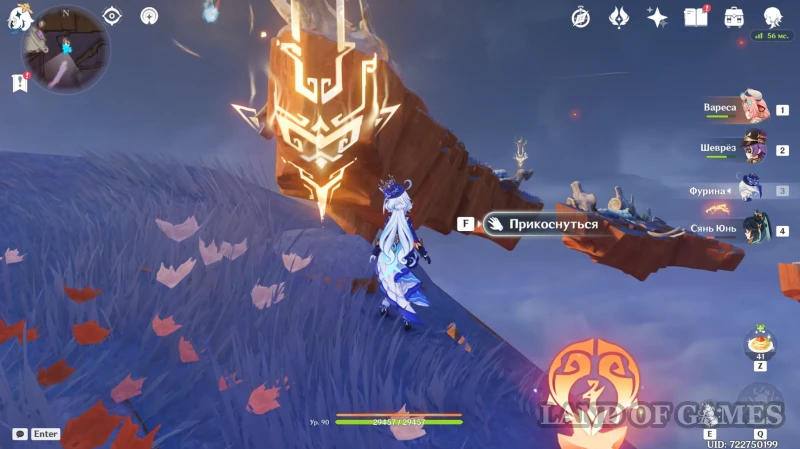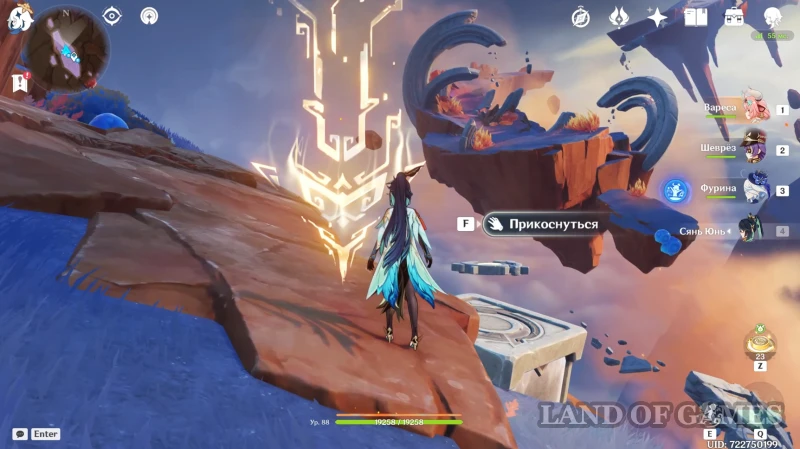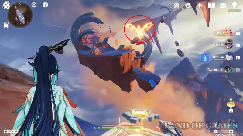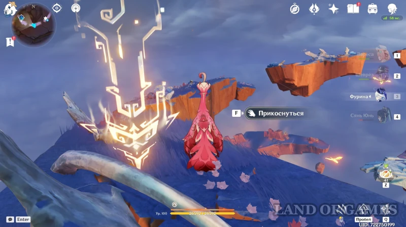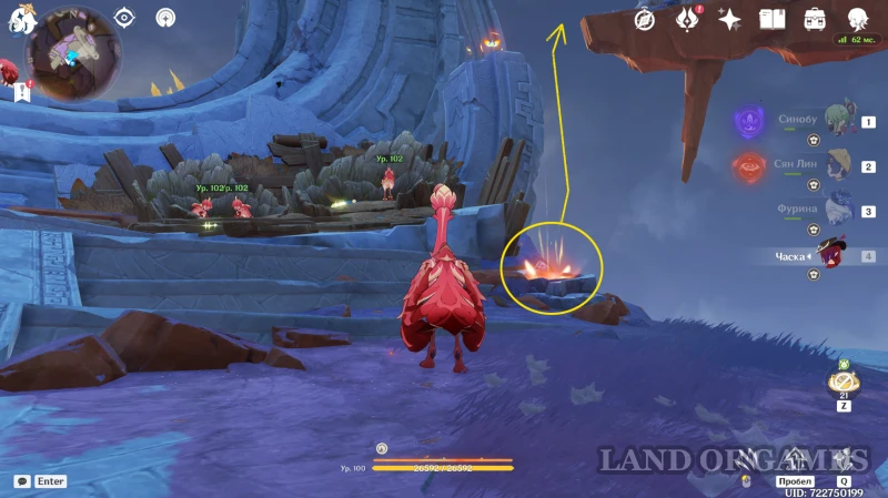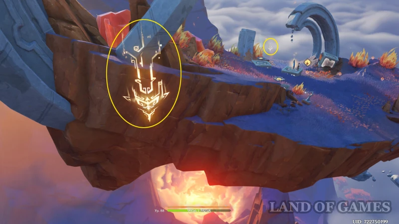 Далее переместитесь к центральному острову с каменным кольцом, подойдите к флогистоновой трещине справа от гнезда с кукузавриками (в облике птицы или за Часку) и активируйте механизм — так можно набрать достаточно высоты, чтобы долететь до островка с 7-й печатью.