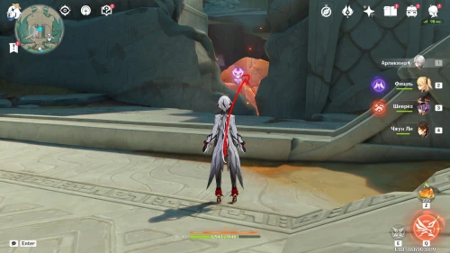 Прежде чем проходить через открывшуюся дверь обязательно возьмите свою самую прокаченную команду с сильными персонажами любых стихий. Однако желательно взять героев из Натлана, так как вам предстоит драться с сумрачными мимифлорами, барьеры которых легче всего уничтожать атаками с характеристикой Ночного духа.