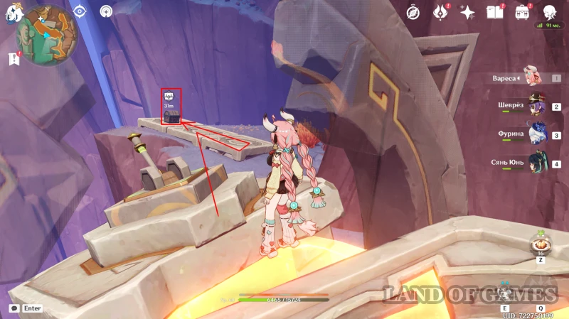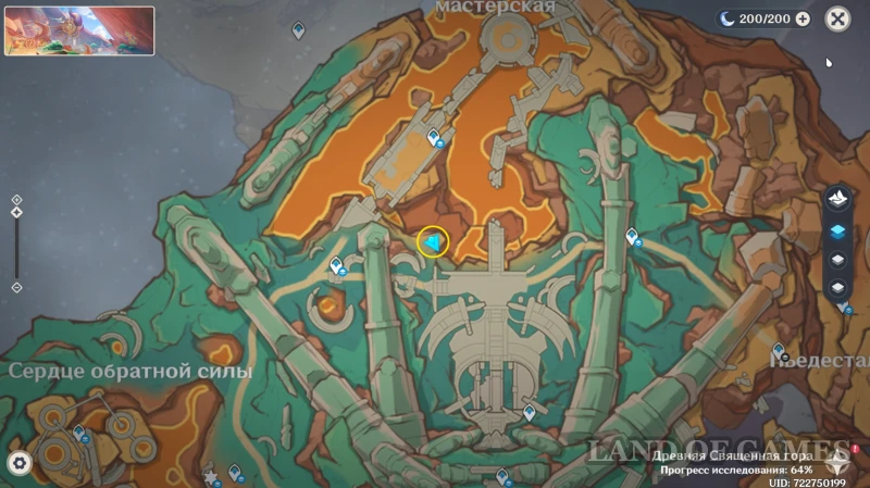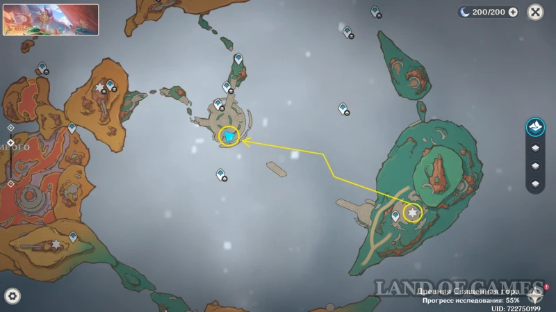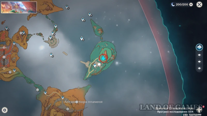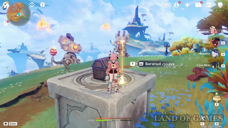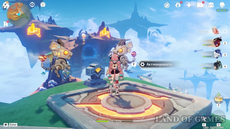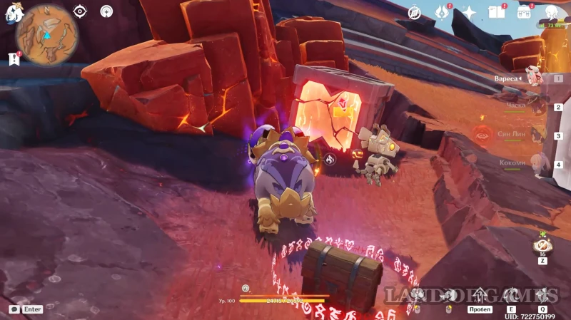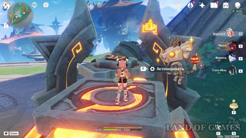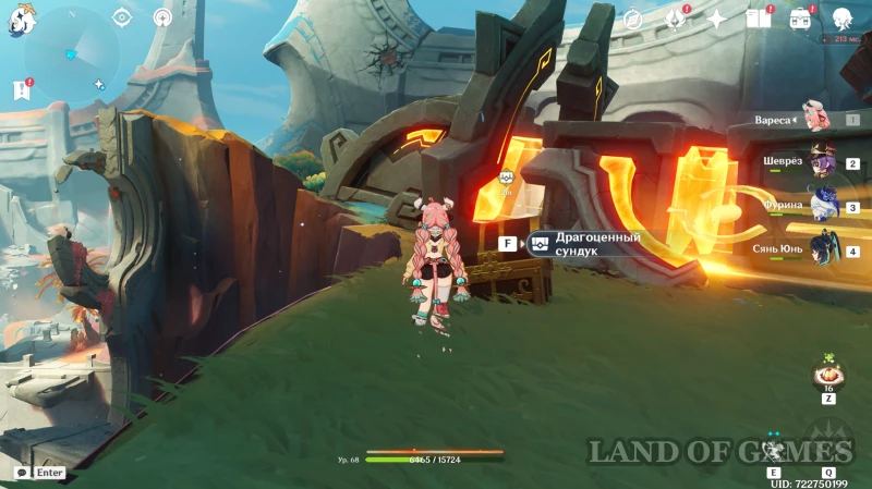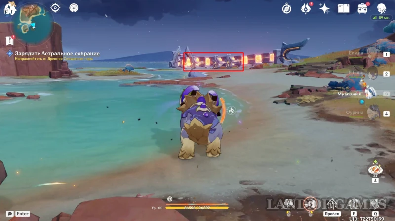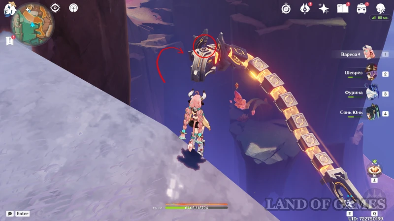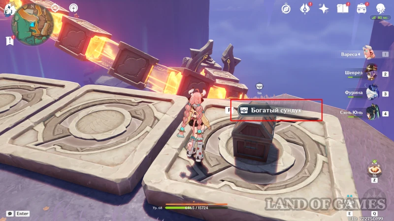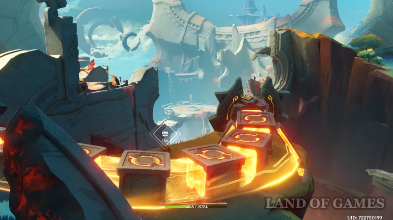 Залутайте обычный сундучок на макушке и приготовьтесь к активации гиганта – после сбора награды он сразу начнет двигаться вверх, направляясь к самой высокой точке Алтаря сбора пламени.