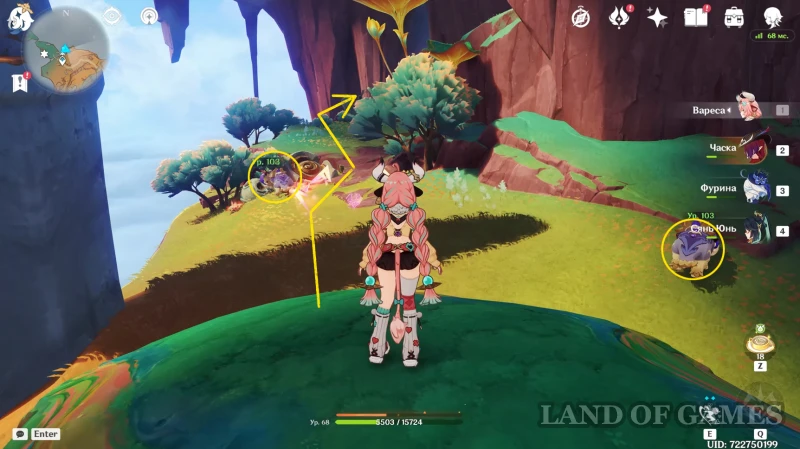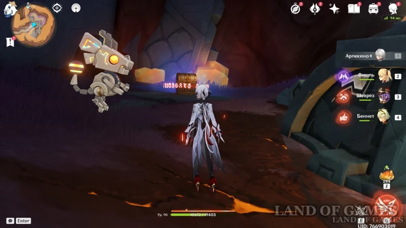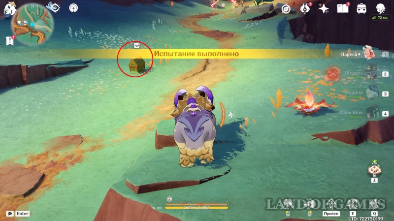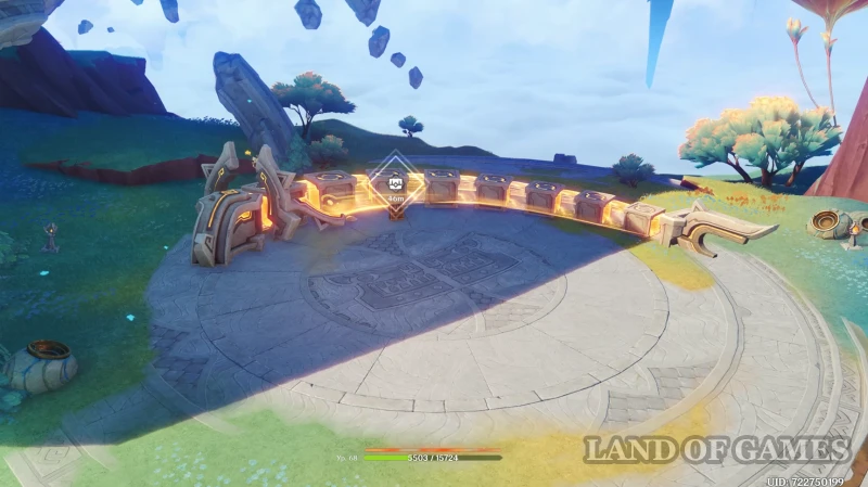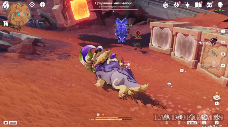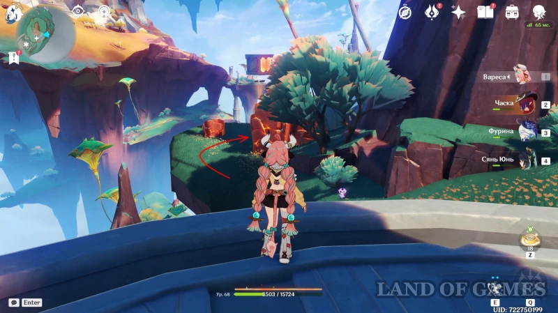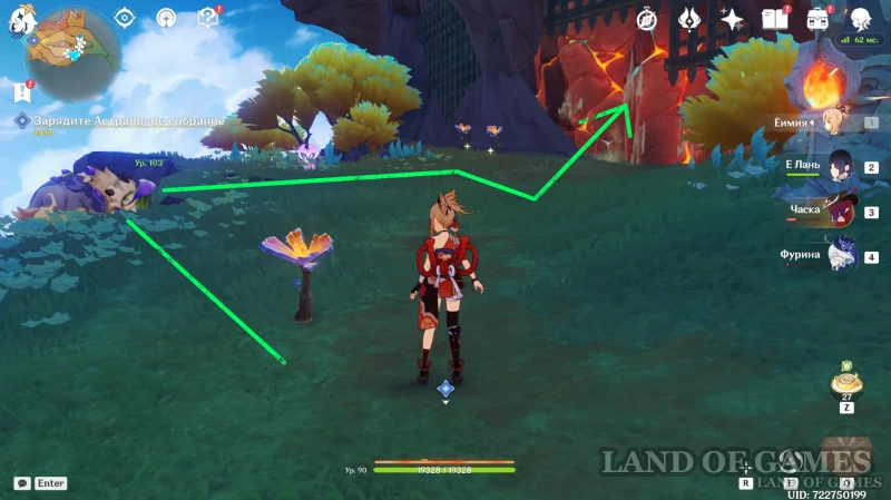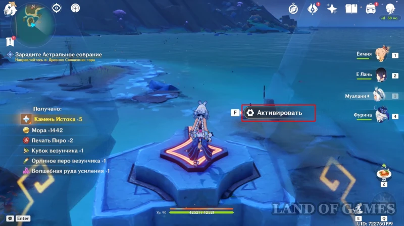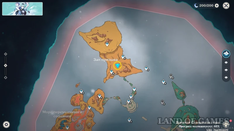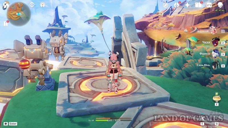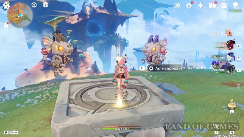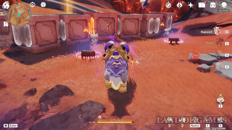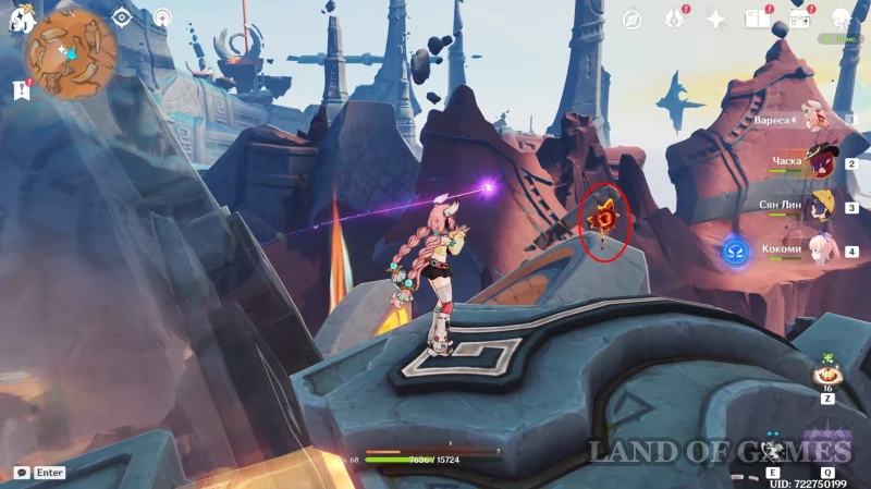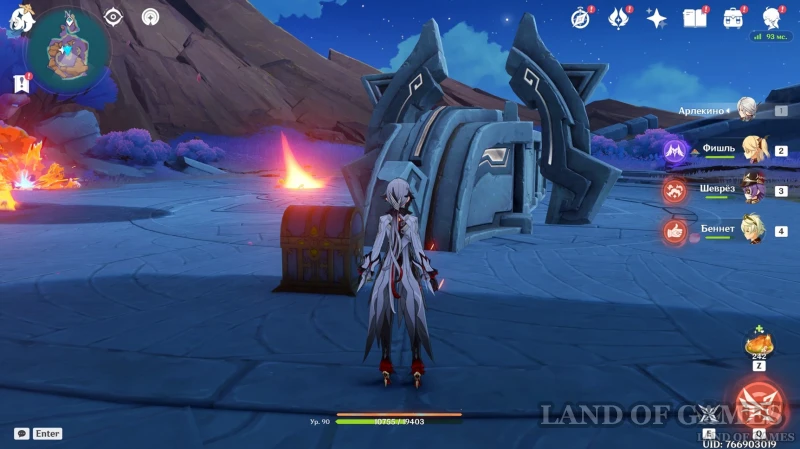 Залутайте обычный сундучок на макушке и приготовьтесь к активации гиганта – после сбора награды он сразу начнет двигаться вверх, направляясь к самой высокой точке Алтаря сбора пламени.