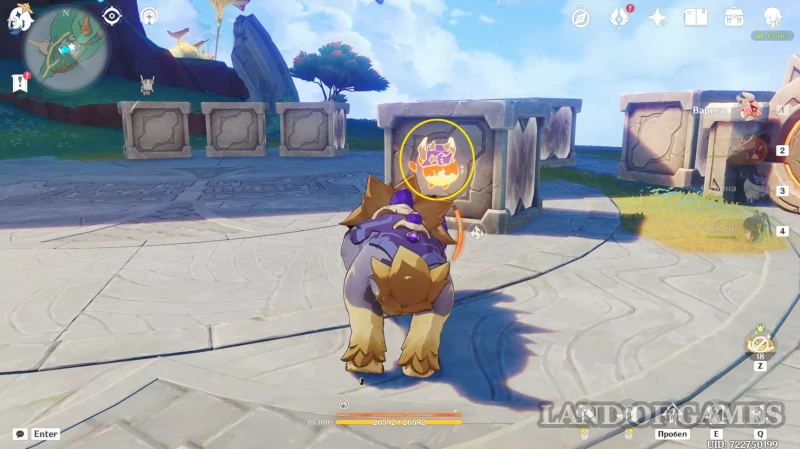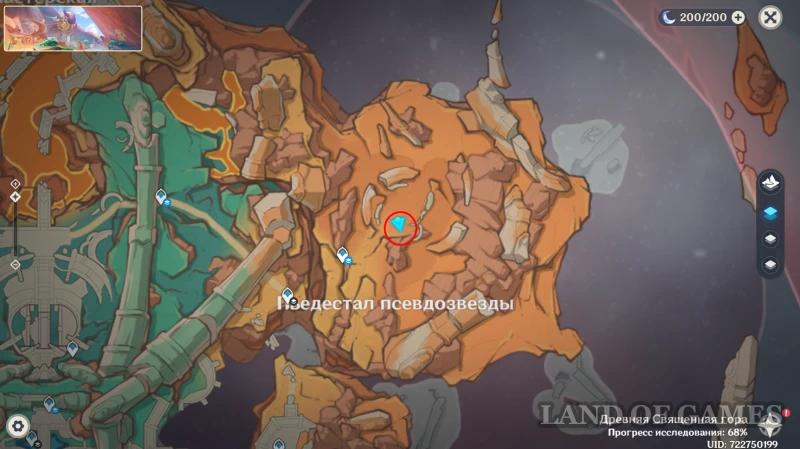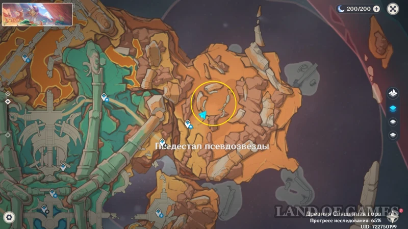 Последняя загадка со слугами и драконом расположена по центру Пьедестала псевдозвезды (восток 2-го уровня священной горы). Вам придется сразиться с парой врагов и найти все недостающие детали каменного гиганта. Перейдем к поэтапному разбору ее решения.