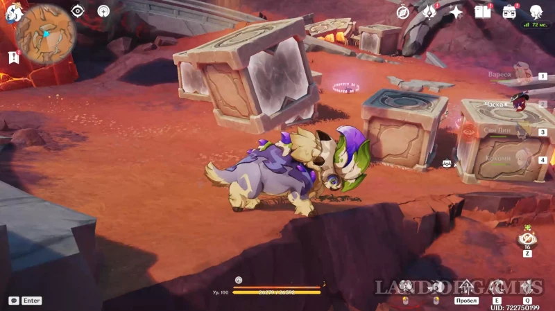 Опускаемся на второй уровень Священной горы: следующая головоломка находится на западной половине Сердца обратной силы. Найдите на поляне с краю от лавового озера каменного дракончика и татанказавра – поговорив с этим слугой, можно принять участие в гонке заврианов.