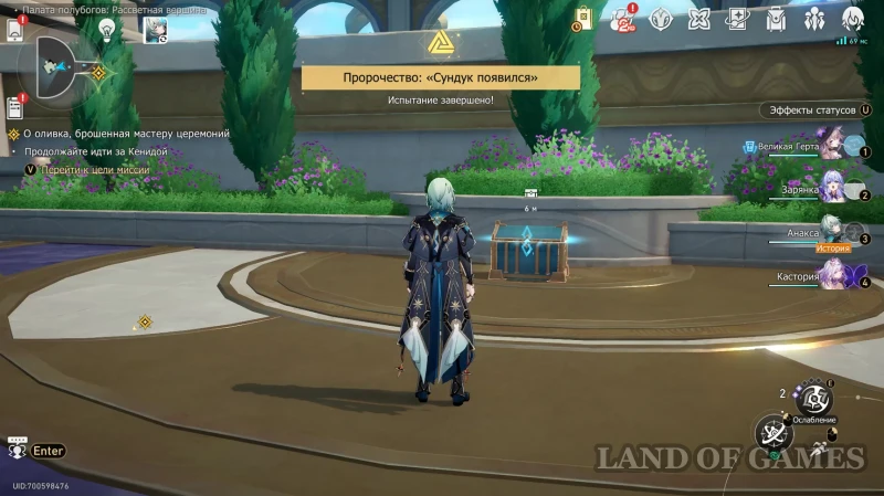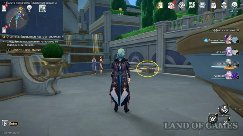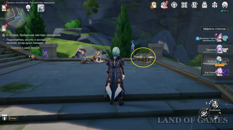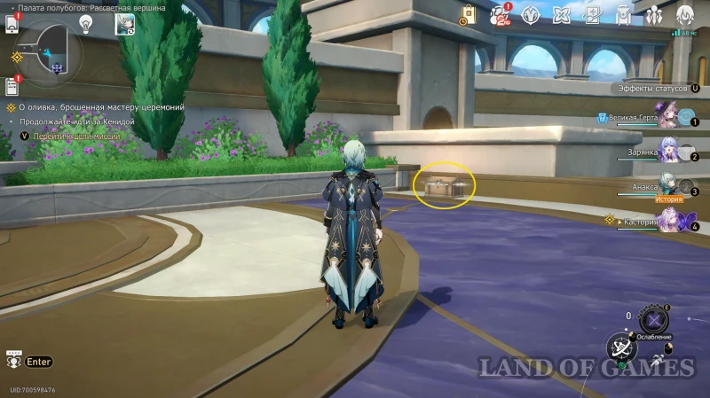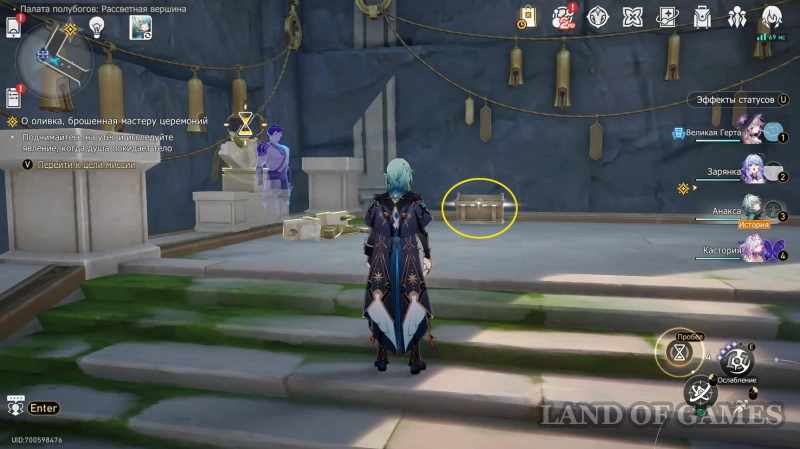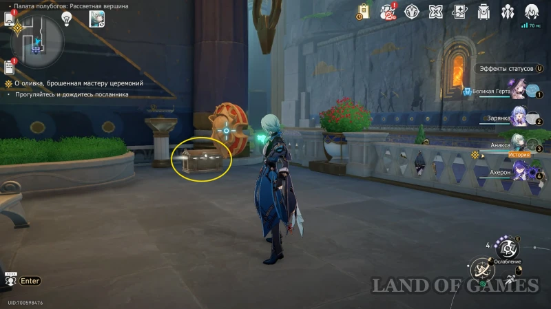 От центра Палаты полубогов бегите на север — очередной сундучок будет ждать в левом углу участка за спуском с главной дороги.