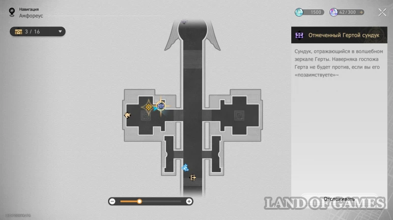 Эта линейная одноуровневая локация насчитывает на своей территории 18 сундуков разной редкости (в том числе за решение головоломок). На карте ниже можно будет посмотреть их примерное расположение.