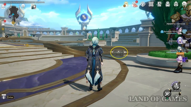 Перед вами духовный и политический центр города Охема, в котором старейшины проводят нескончаемые дебаты, а жрецы наблюдают за подпирающим мир титаном. Доступ к данной локации у вас откроется в рамках квестовой цепочки «Цветы средь упокойных юдолей» (этап «О оливка, брошенная мастеру церемоний»), однако, мы советуем вам взяться за ее исследование уже после прохождения всех миссий линейки, чтобы вы смогли без проблем посетить все уголки области.