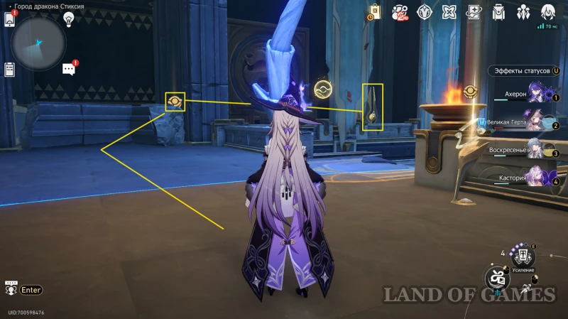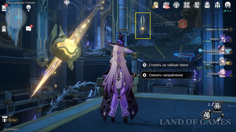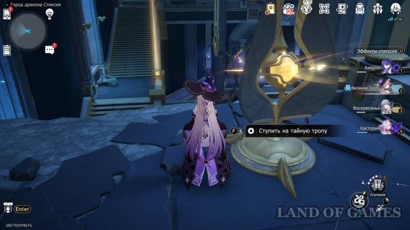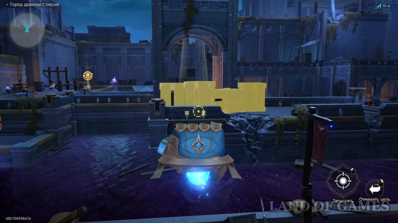 Возвращайтесь в помещение через стенку от места получения предыдущего ларца и пройдите через дальнюю золотую арку, ведущую к головоломке с Плитой пророчества. Выше мы оставили подсказку к решению пазла «Свободный путь», за который выдается один ценный сундучок.