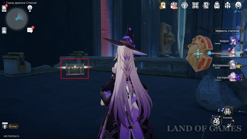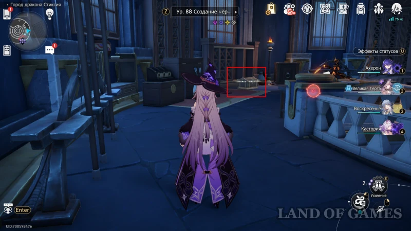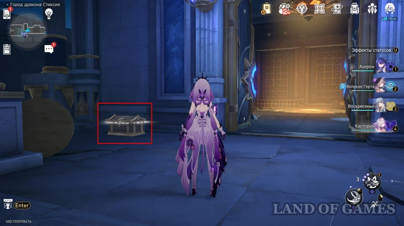 Предпоследний сундучок можно забрать в центре зала на первом этаже, в светлом варианте локации. Чтобы его получить, придется разогнать пару враждебных мобов.