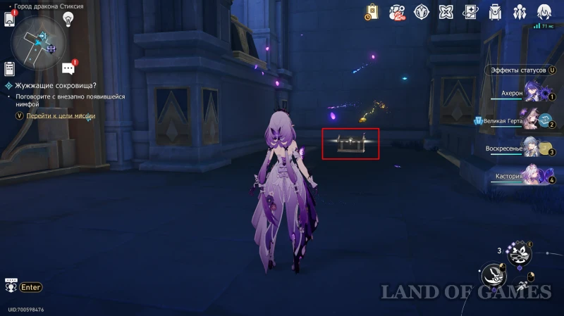 От «Заброшенного дворца» спускайтесь по лестнице вниз, пока не упретесь в тупик с сундучком. Эта сокровищница стала целью Бартолоса — используйте навык на «пробел», возвратите сбежавшего духа и побейте его в поединке (его сообщники уязвимы к квантовому, физическому и электрическому урону). В награду сможете вернуть ларец и получить 40 нефрита и 60 ед. амброзии.