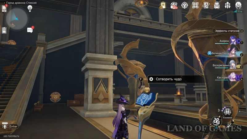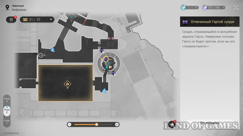 Возвращайтесь к мини-телепорту на лестнице между вторым и третьим этажами, поверните его вниз и спускайтесь на нижний уровень зала. Затем пройдите к Книге чудес, за левым поворотом от которой вас будет ждать обычный сундучок.