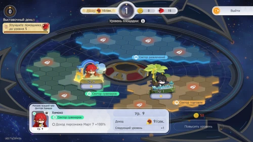 Для повышения эффективности выставки необходимо будет увеличить уровень смотрителей, формировать связи между ними, завершать различные ивенты на выставке и собирать карточки воспоминаний. Отметим, что каждый реальный день будут разблокироваться только 2 выставочных дня. Их подробное прохождение будет представлено ниже.