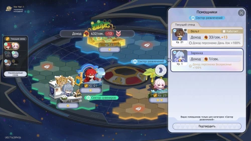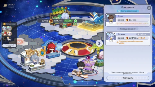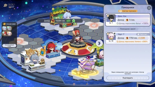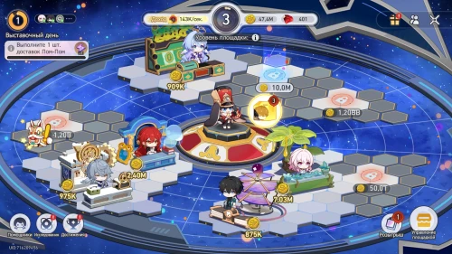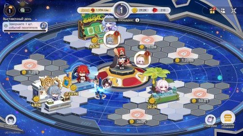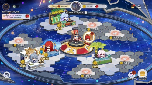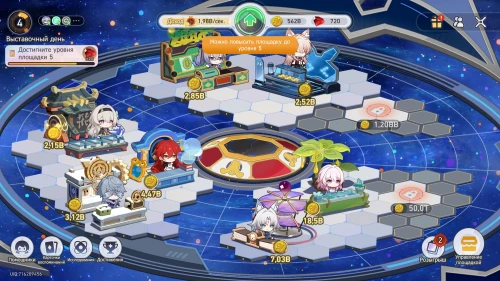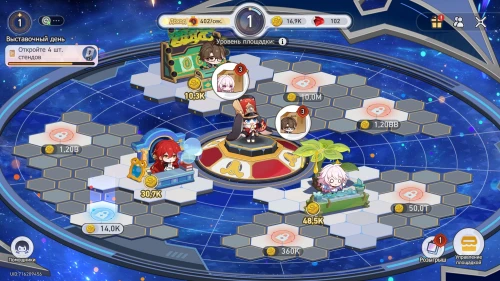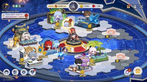 В рамках данного события вам предстоит стать куратором и взяться за управление филиала выставки Star Rail WORLD. На этой площадке имеется немало уникальных стендов, смотрителем которых могут стать знакомые вам персонажи. Они помогут вам зарабатывать золотые монеты, причем, чем выше будет эффективность выставки, тем больше окажется ваш заработок.