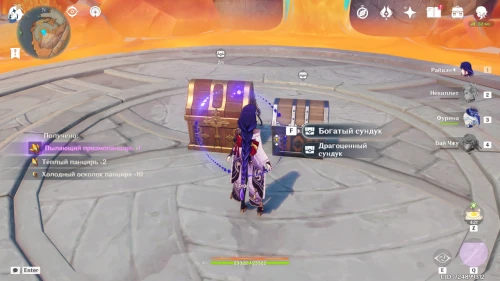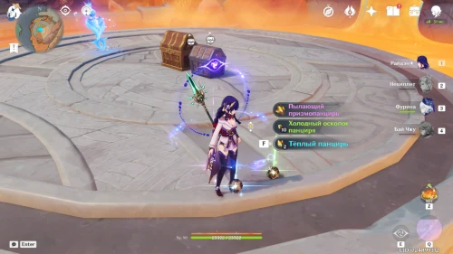 После победы над противниками вы получите панцири — ресурсы, необходимые для возвышения оружия. Кроме того, на арене появятся богатый и драгоценный сундуки. Открыв их, вы найдете 15 примогемов, 5 Пиро печатей и другие полезные награды: мору, артефакты, книги опыта и оружие.