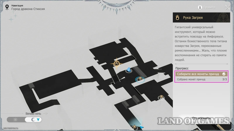 На территории разрушенной черным течением Стиксии и охемской Палаты полубогов в Honkai: Star Rail есть несколько Рук Загрея — управляемых механизмов, с помощью которых можно долететь до монеток причуд и получить за сбор разные сокровищницы Амфореуса. В этом гайде мы вновь расскажем, как найти каждый пульт управления ладонью, собрать каждый золотой жетон и разблокировать секретные ачивки «Попробую коснуться божества» и «Выходи уже!».