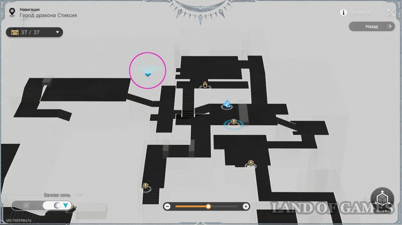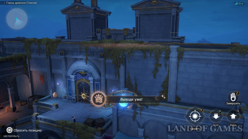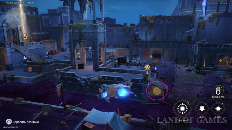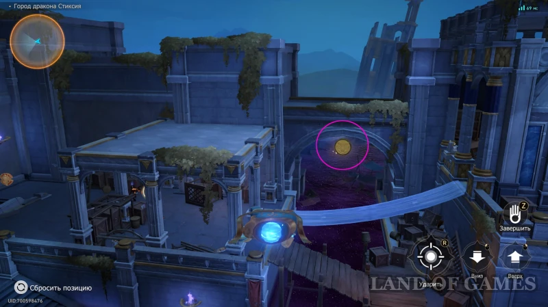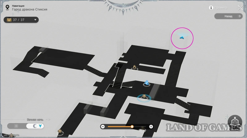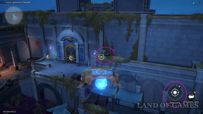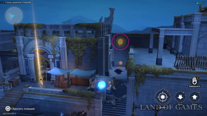 Перемещаемся к якорю «Рынок древнего города», находящемуся внутри западной 3D-карты Стиксии, и поднимаемся по лестнице до балкончика с пультом управления рукой.