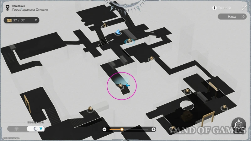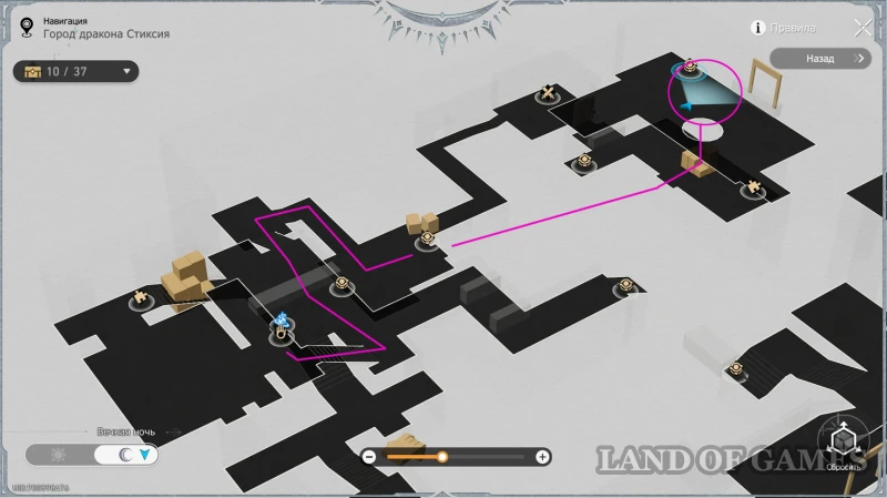 Найдя все золотые монеты в области, спускайтесь к причалу и бегите прямо (активировав прожектор у воды), а после поднимайтесь на круглом лифте к выходу из 3D-карты — оставив руну на маяке слева, вы сможете получить доступ к ценной сокровищнице.