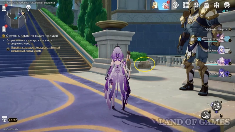 От «Заброшенного дворца» спускайтесь по лестнице вниз, пока не упретесь в тупик с сундучком. Эта сокровищница стала целью Бартолоса — используйте навык на «пробел», возвратите сбежавшего духа и побейте его в поединке (его сообщники уязвимы к квантовому, физическому и электрическому урону). В награду сможете вернуть ларец и получить 40 нефрита и 60 ед. амброзии.