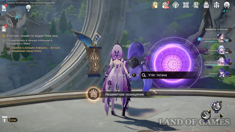 Доберитесь до якоря «Утес титана: Вход» и пройдите до ближайшей круглой площадки. Затем изучите парящее Откровение «Утес титана» и помешайте воришке украсть понравившийся свиток — за это можно получить не только стандартные 40 нефритов и 60 ед. амброзии, но и скрытую ачивку «Незаметное похищение».