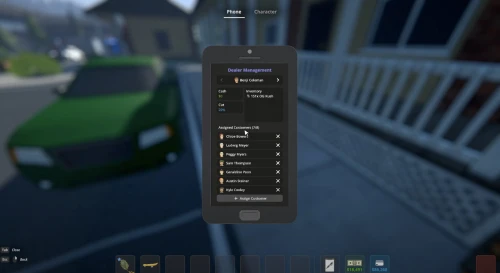 Снова откройте свой телефон, а потом перейдите в раздел «Дилеры» (Dealers), чтобы открыть соответствующее меню на своем смартфоне. Затем выберите нужного партнера (в нашем случае это Бенджи) и нажмите на надпись «+ Назначить клиентов» (Assign Customer). После этого появится новое окошко с именами всех открытых вами покупателей. Выберите 8 человек и передайте их дилеру.