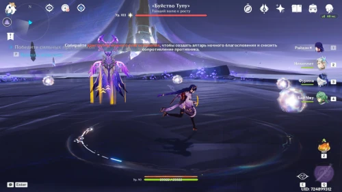 После этого на поле появляются белые светящиеся частицы — кристаллы ночного благословения. Собирая их, вы снижаете сопротивления босса.