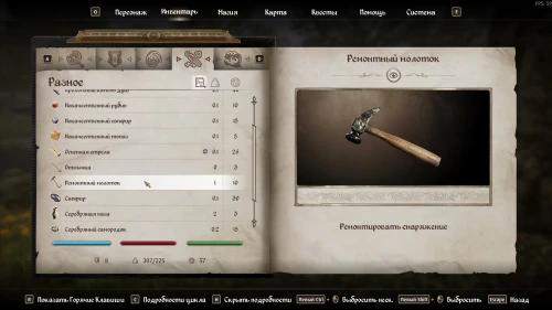 Добавим, что у вооружения в игре, как и у брони, со временем понижается прочность, что влияет на его эффективность, а затем оно и вовсе приходит в негодность. Если вы не хотите оказаться с голыми руками в самый неподходящий момент, то вовремя чините свое оружие с помощью ремонтного молотка или приобретайте соответствующую услугу у кузнецов.