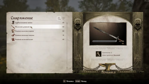 | Ржавая железная булава | 00090614 | 15.0 | 70 | 6 | 7 |