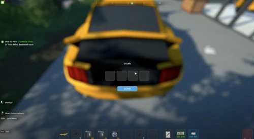 Если вы хотите поместить лишние предметы в багажное отделение автомобиля, то просто подойдите к его задней части и снова нажмите клавишу «Е» для появления окошка со свободными ячейками, куда вы можете переложить любой груз.