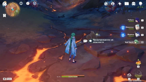 Телепортируйтесь к точке к востоку от Удела Благодатных Земель и заберитесь на ближайшую возвышенность. Рядом с тропинкой вы увидите предупреждение об опасности. Паймон заинтересуется им и предложит исследовать окрестности.