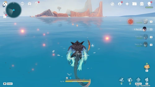 Босс создает водоворот на месте нахождения персонажа, который затягивает его внутрь, непрерывно нанося Гидро урон. В конце вихрь взрывается, нанося повышенный Гидро дамаг.