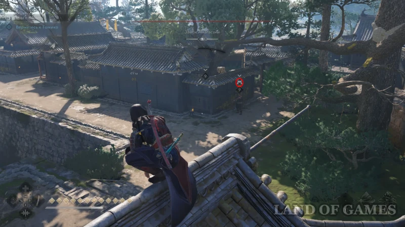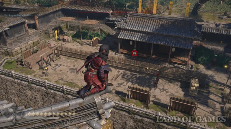 - Активируйте фокус зрения с помощью ПКМ (на ПК) или LT (на консолях) — это поможет быстрее находить ценные предметы, включая ключи от куры, самих самураев-дайсе и прочий скрытый лут (он помечаются белыми и золотыми кружками);