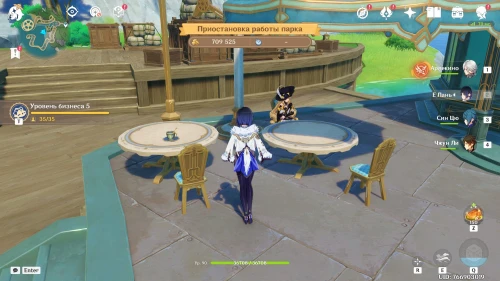 Находясь во всем том же парке развлечений, пройдите к столику рядом с рестораном, и вы найдете здесь Навию. Она скажет вам, что с нетерпением ждет того, во что сможет превратиться парк под нашим руководством. С большой вероятностью девушка будет сидеть здесь на протяжении всего ивента.