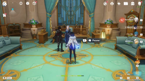 Телепортируйтесь к статуе Гидро Архонта возле Дворца Мермония, а затем пройдите немного на северо-запад, поднявшись по лестнице, и здесь вы обнаружите Шеврез, Невиллет и Ризли. Они будут обсуждать допрос подозреваемых, связанных с подпольным игорным рынком. Ризли же не захочет присутствовать на судебных слушаниях.