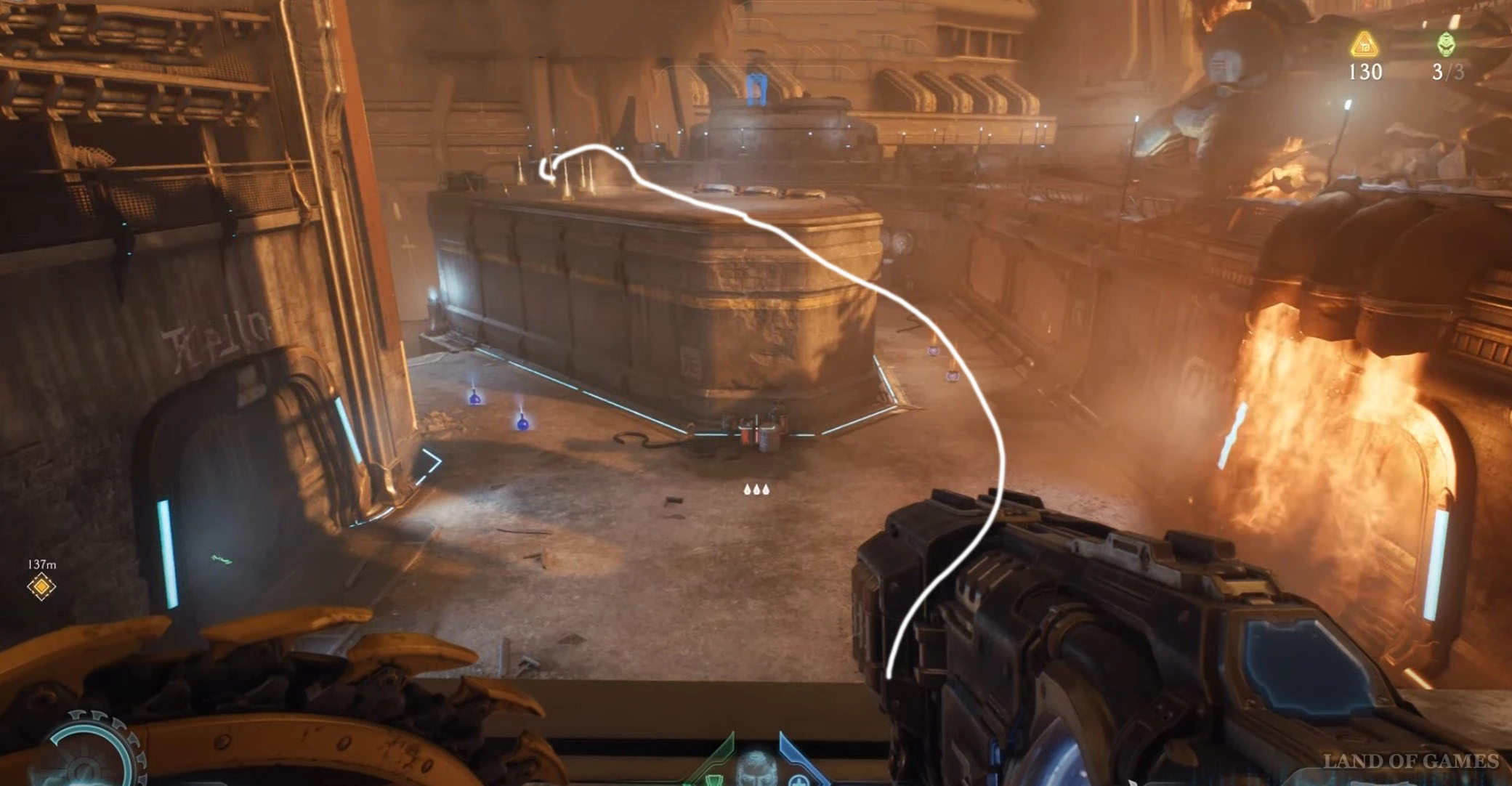 Взберитесь по стене с левой стороны от Святилища, а потом пройдите дальше влево, и вы заметите 3 коробки, на которые можно взобраться, чтобы попасть в вентиляционную шахту. Подберите золотые слитки и спуститесь в пролом в конце пути для нахождения еще 5 слитков. Потом сверните влево, идите вперед и спрыгните в помещение со скином для оружия.