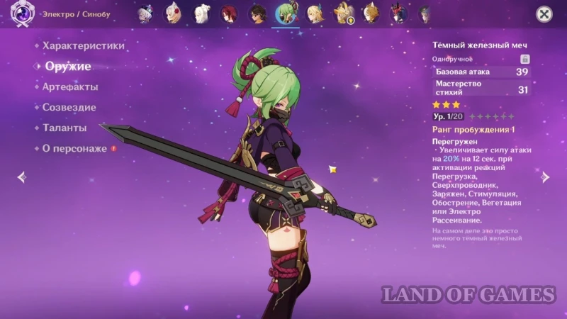 Специальных механик с этим одноруком не требуется. Для получения максимального эффекта достаточно использовать героев, которые могут вызывать реакции из пассивного эффекта. Лучше и проще всего реализуется меч в отрядах Электро и Дендро. Такой тип команды чаще требует мастерство стихий, а еще в нем есть представители, способные часто накладывать элементальный эффект для реализации реакций.