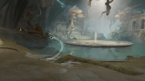 Предмет будет находиться в обычном сундуке в руинах левее камня с надписями, который активирует испытание. Сундук доступен до начала боя на арене, поэтому можно просто забрать награду, отложив участие в битве.