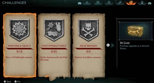 Примечание: Отметим, что эта локация идеально подходит для завершения испытания «Несокрушимая преграда», так как здесь вы сможете столкнуться с большим количеством рыцарей ада. Просто парируйте их атаки щитом, когда они будут готовы совершить рывок в вашу сторону (они будут подсвечиваться зеленым).