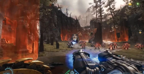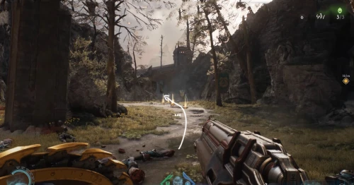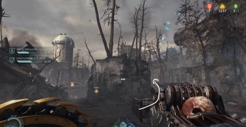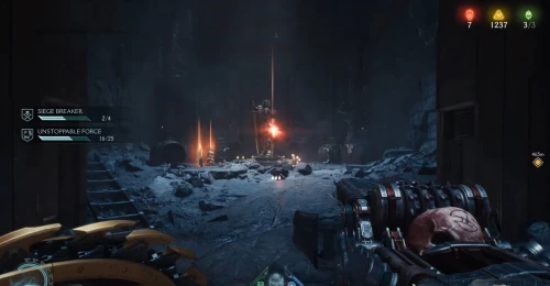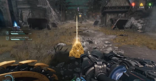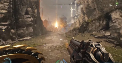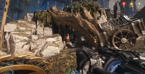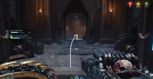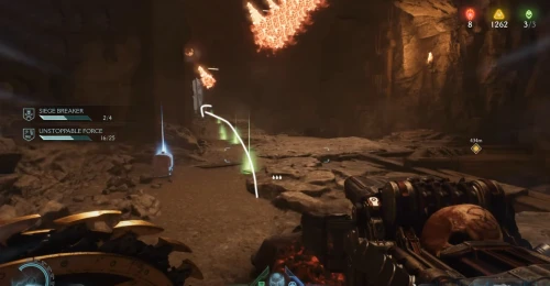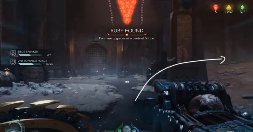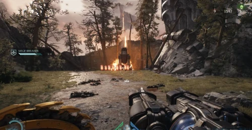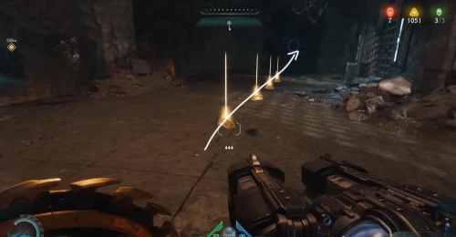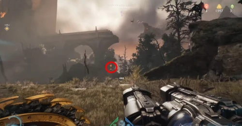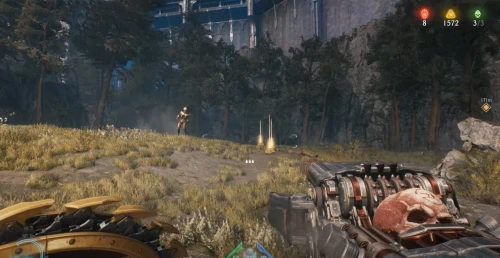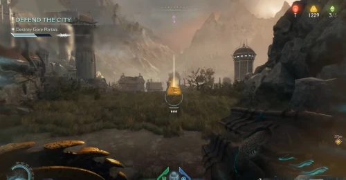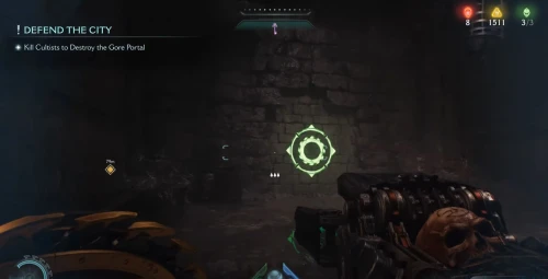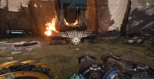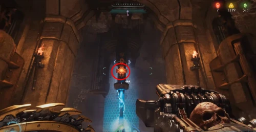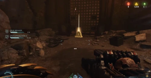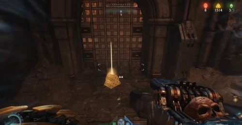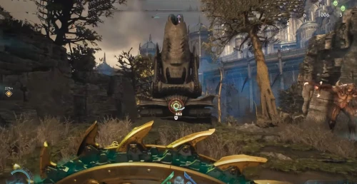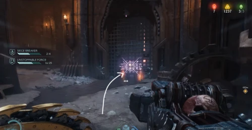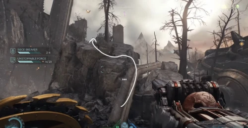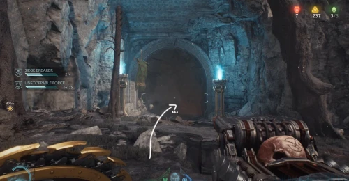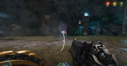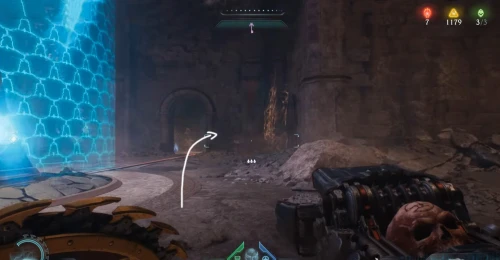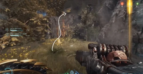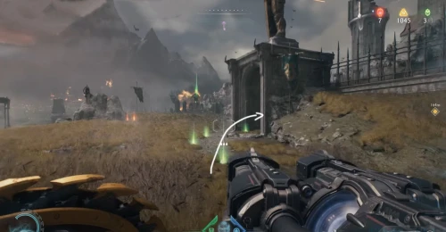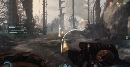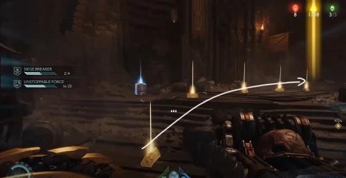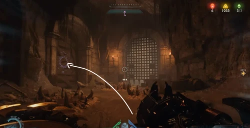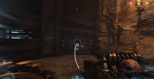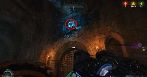 После уничтожения второго кровавого портала идите на северо-восток, и вы сразу же увидите перед собой орудие. Разберитесь со всеми противниками в округе, чтобы убрать барьер, и взорвите пушку своим щитом. Не забудьте подобрать 8 слитков, которые останутся лежать на земле.