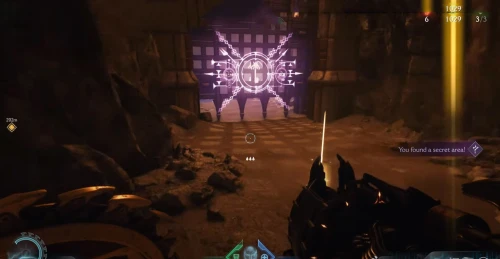 Направляйтесь на северо-запад от второго кровавого портала, и вы тут же обнаружите на земле 5 золотых слитков. Соберите их, а затем начните двигаться по следу из зеленых фрагментов брони для обнаружения синего портала в небольшой каменой постройке – войдите в него для попадания в секретную зону на нижнем уровне.