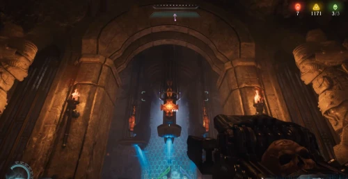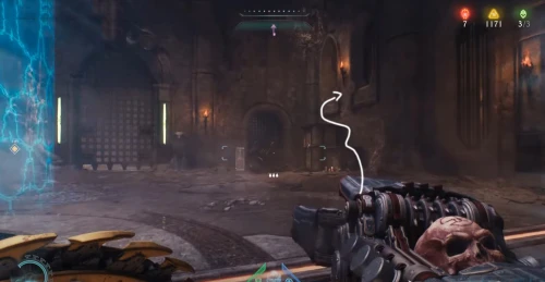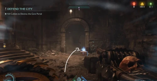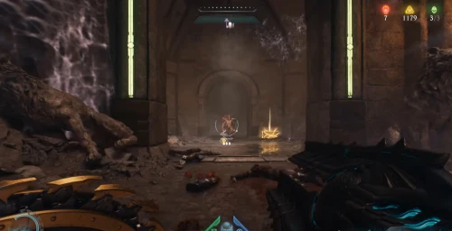 Направляясь к финальному кровавому порталу, войдите в сооружение, а затем расправьтесь со всеми появившимися врагами. Далее войдите в возникший здесь синий телепорт для попадания в другую локацию.