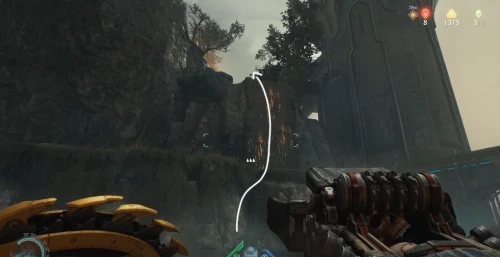 Отправляйтесь на запад от прошлого кровавого портала, пока не увидите в центре области небольшой каменный выступ, на вершине которого и находится страничка. Обойдите его, и вы увидите металлическую балку на камнях. Поднимитесь по ней, а затем спрыгните на булыжник слева, и в итоге вы сможете добраться до документа.